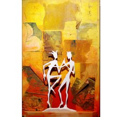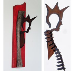 Rindenstück, Zweige, Dispersion, Tempera, Glas, Lack, Holz